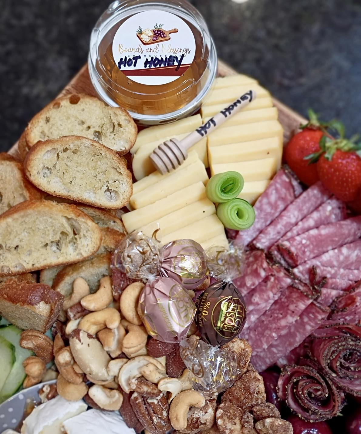 Every board is carefully curated and prepared with fresh ingredients, proper food-handling practices, and an eye for presentation—so your guests enjoy both beauty and quality in every bite.